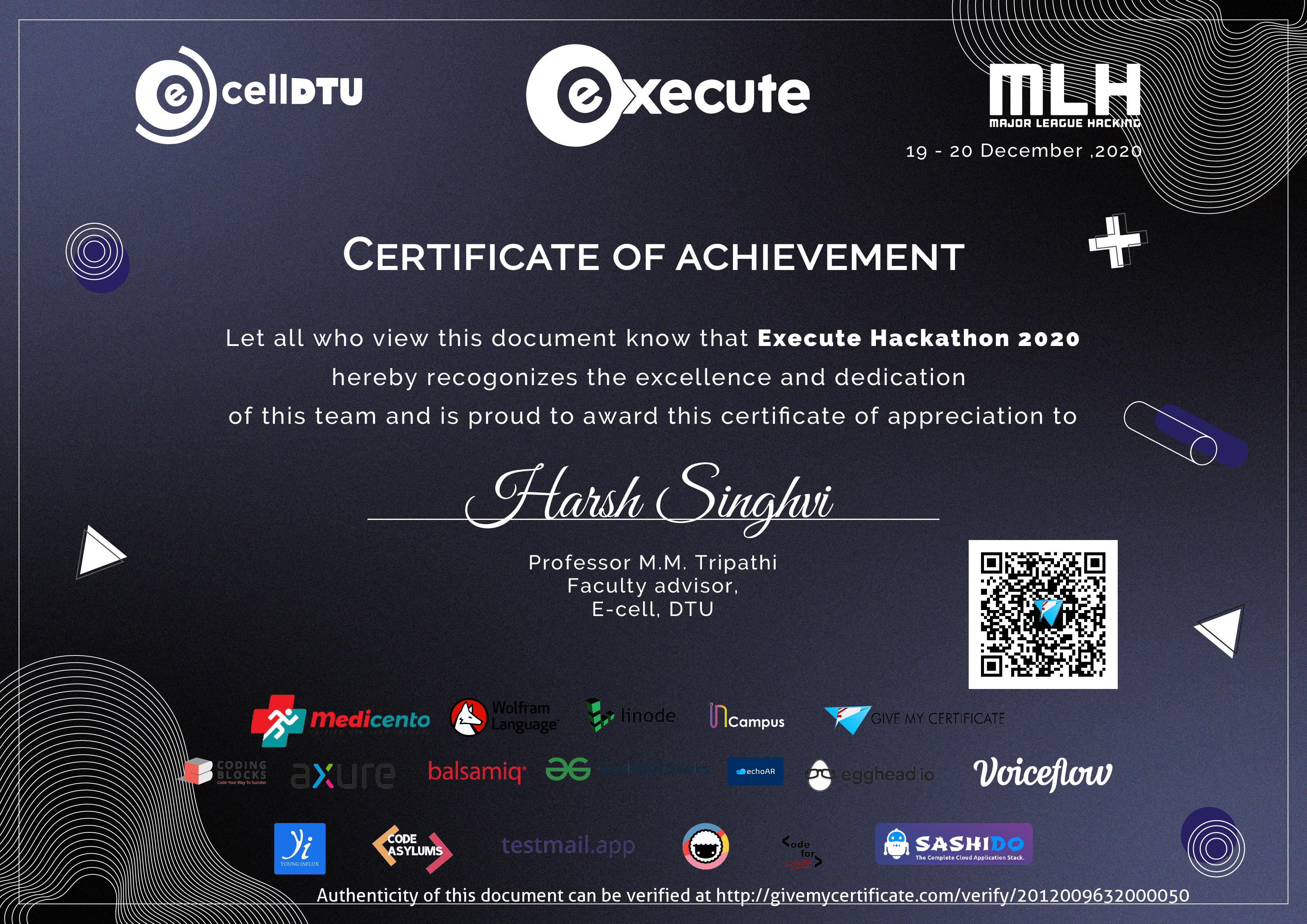 coding hackathon imp Execute Hackathon (MLH) by Harsh Singhvi Dec 19, 2020 Download PDF Validate Certificate Certificate No: 2012009632000050 Previous Article Entrepreneurship Awareness drive by EAD Jaipur Next Article Hands on session with Flutter By Girlscript