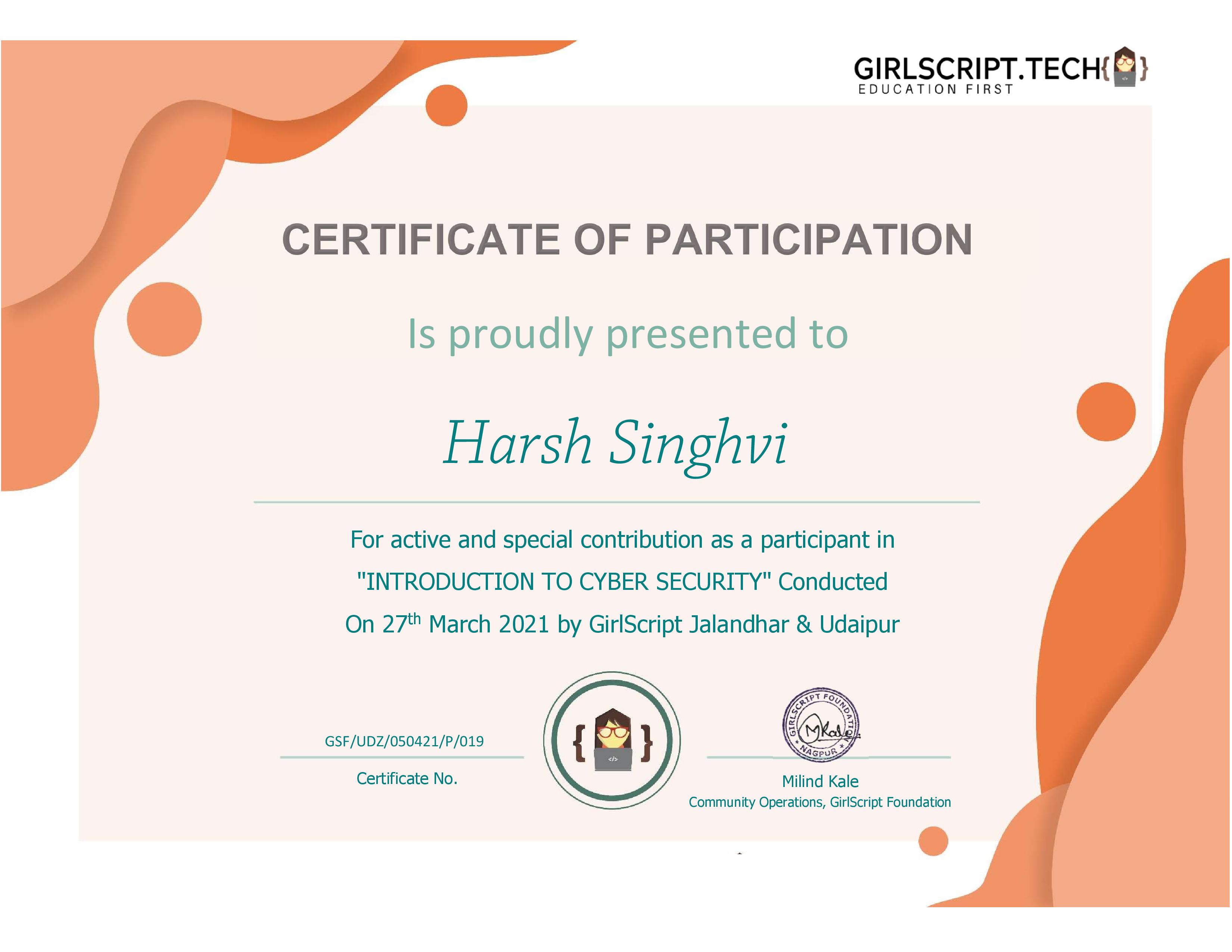 cyber Cyber Security By GilsScript by Harsh Singhvi Mar 27, 2021 Download PDF Previous Article CODE-N-BUILD 2.0 (JECRC) Next Article MegaHack 2.0 by SJCEM (First Prize)