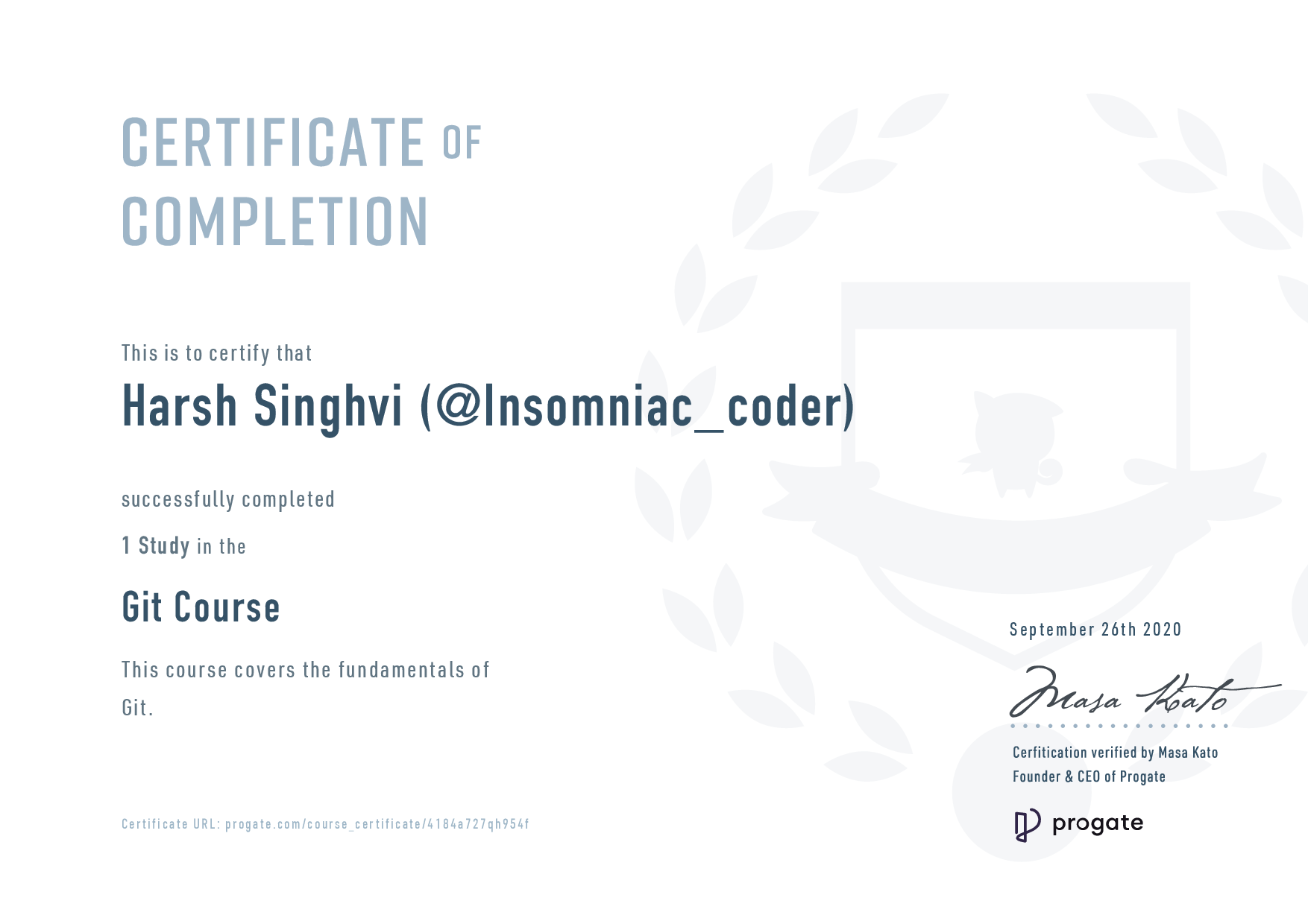 coding devops-it progate Progate Git Course by Harsh Singhvi Sep 26, 2020 Download PDF Certificate URL: progate.com/course_certificate/4184a727qh954f Previous Article Time Management: Working from Home By Linkedin Learning Next Article IEEE ACM AUR National Level Environment and Climate Change Quiz
