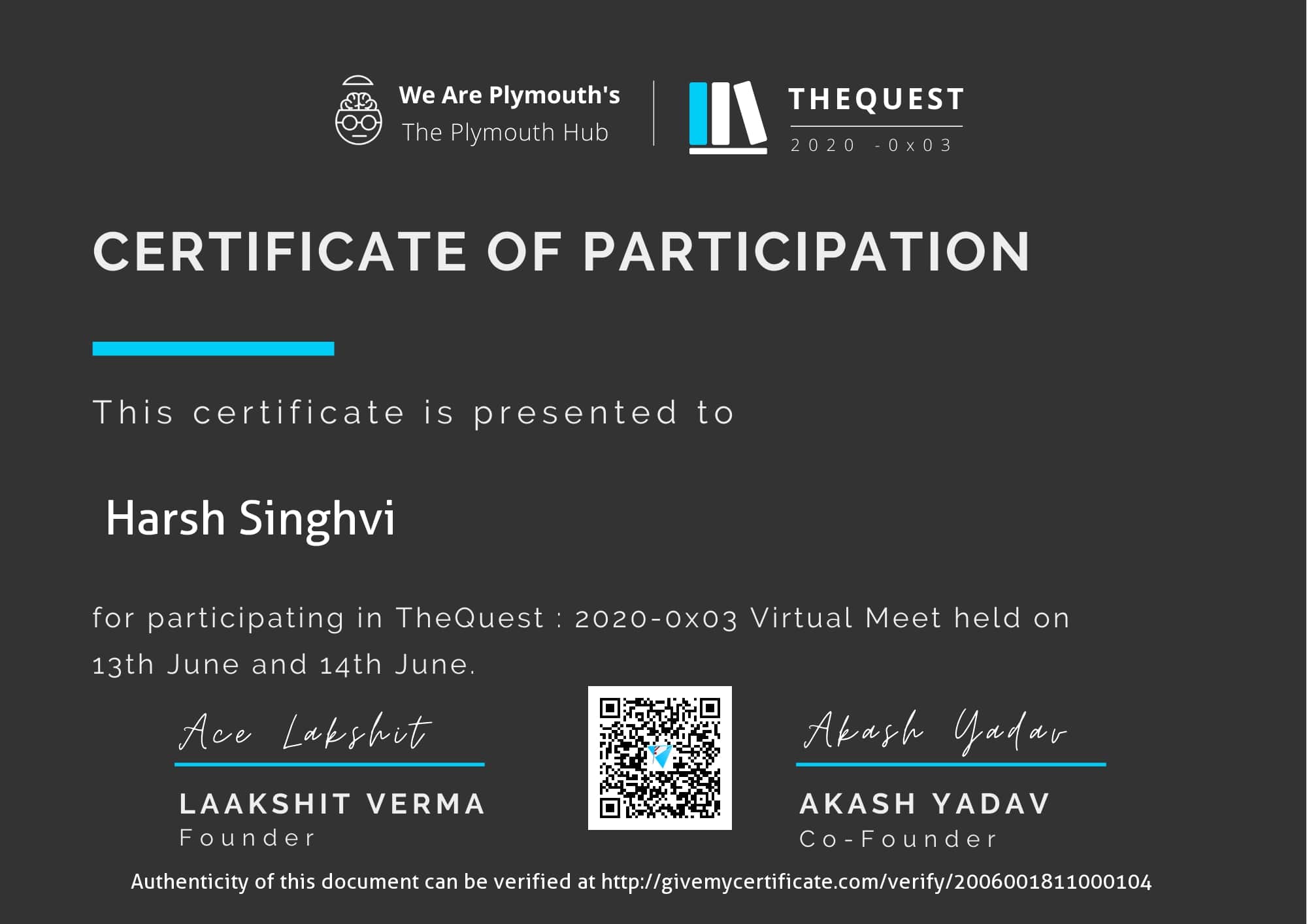 cyber wap The Quest by 0x03 by Harsh Singhvi Jun 14, 2020 Download PDF Verify Certificate Previous Article Programming Foundations: Version Control with Git By Linkedin Learning Next Article HTTP Essential Training By Linkedin Learning